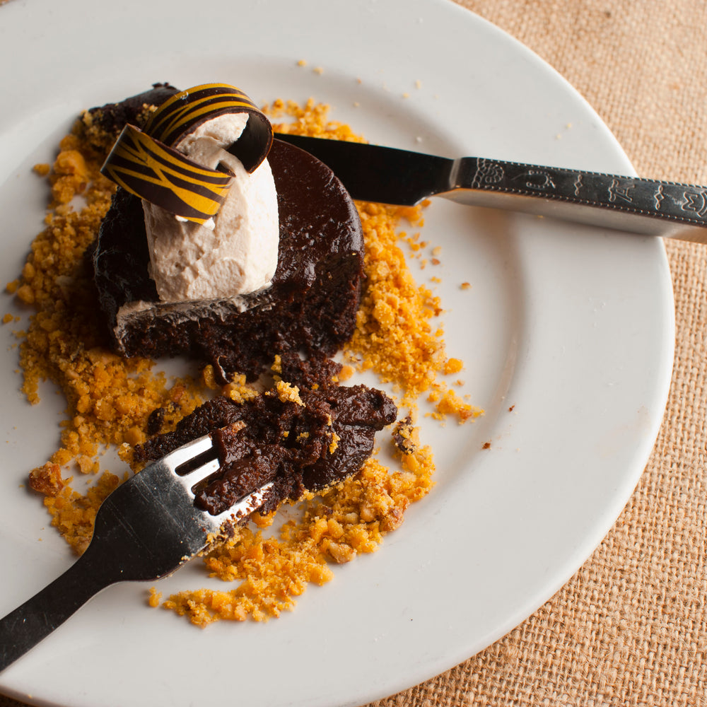 Ancho Chili Chocolate Cake with Tomatillo Cream and Crushed Pistachios Serves 4