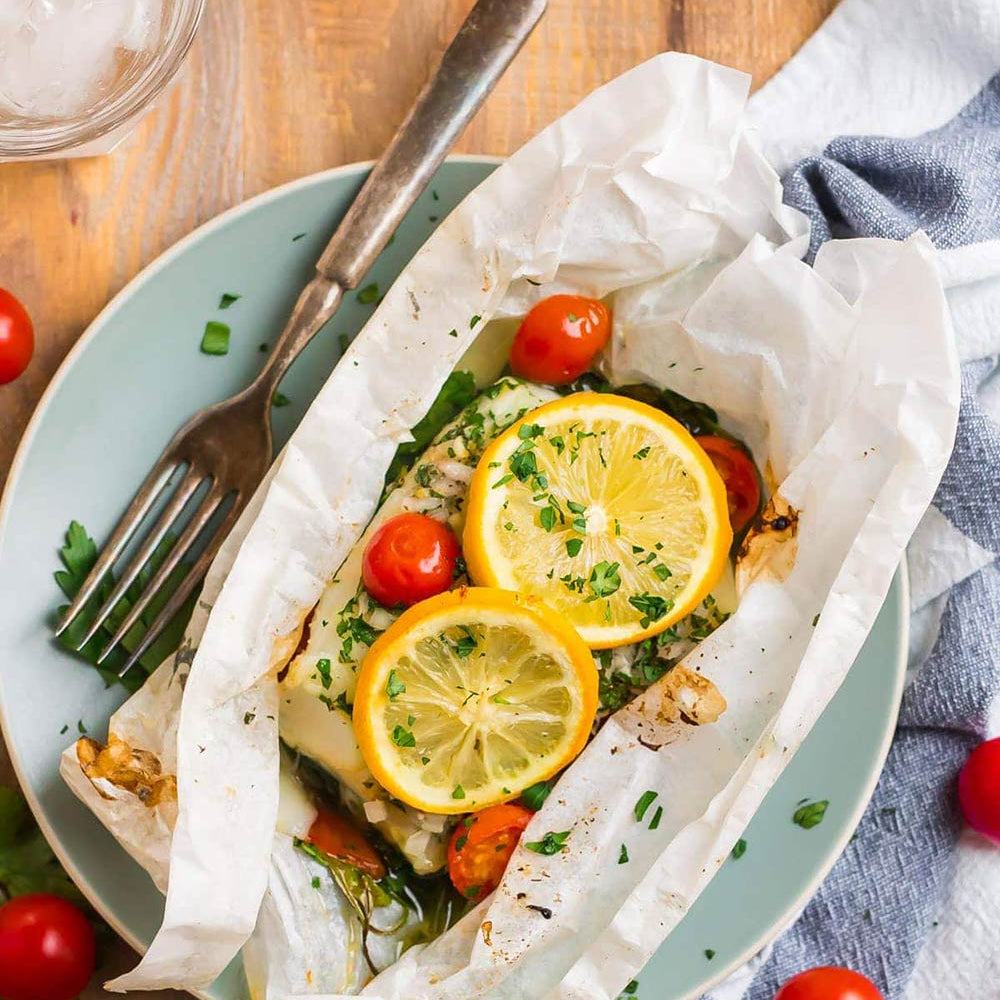Black Bass en Papillote with Spring Vegetables, Fresh Lemon, Mint & Spanish Olive Oil